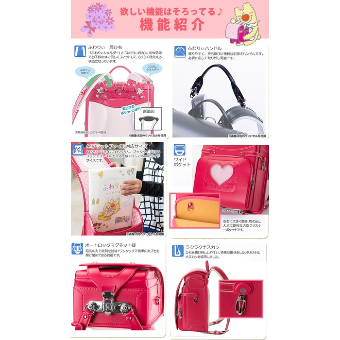 【후와리】2017년 최신 모델 my friend 소녀용 클라리노F 스텟치 란도셀【03-15100】일본제 소녀 경량 A4포켓 파일 대응 하트 대갈
