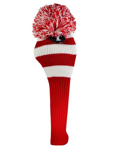 Ray Cook Golf Pom Pom Knit Driver Head Cover, Small, Red/White