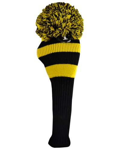 Ray Cook Golf Pom Pom Knit Driver Head Cover, Small, Black/Yellow