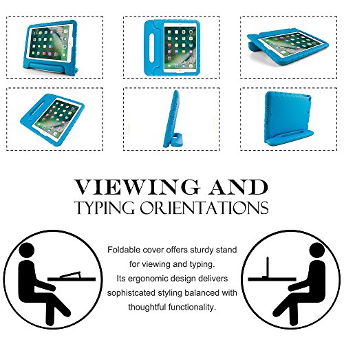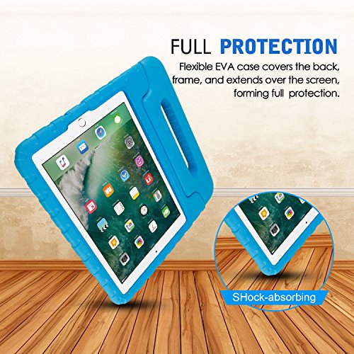 SIMPLEWAY New iPad 9.7 Inch 2017 Kids Case, Light Weight Shock Proof Protective Carrying Handle Stand Cover EVA Case for Apple New iPad 2017 9.7 Inch / iPad Air / iPad Air 2 Tablet, Blue
