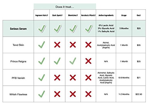 Studio : Urban Waxx Publisher : Urban Waxx Binding : Health and Beauty Product Description WHY WE LOVE IT: Serious Serum is the best ingrown hair eliminator and skin exfoliant you'll ever use. The new concentrated, all-natural formula combines the proven science of powerful exfoliating Alpha Hydroxy Acids (AHAs), Beta Hydroxy Acid (AHAs), lactic acid, glycolic acid, and salicylic acid with nature's best skin soothers like aloe, green tea, chamomile, kelp and peppermint for a seriously effective serum. WHAT IT DOES: This potent combination was designed to keep skin ultra smooth and clear in between waxes. But that's just the beginning. Serious Serum is a multi-tasking powerhouse serum that works on everything from blemishes to dark spots. It fights wrinkles, dry skin and keratosis pilaris (those annoying bumps that pop up on the back of arms). ? Developed as an ingrown hair elminator but does so much more - fights blemishes, dark spots, wrinkles, dry skin and keratosis pilaris ? All-natural formula - free of harsh chemicals, parabens, synthetic fragrances and alcohol ? Can be used all over your body, including your face ? Suitable for sensitive skin WHY IT'S HOT: Celebrity Fans: Olivia Palermo and Jamie Curl ADDITIONAL INFO: This product is not tested on animals, is all-natural and vegan. 0
