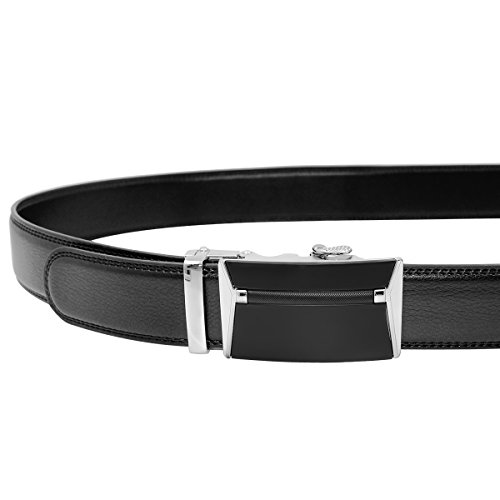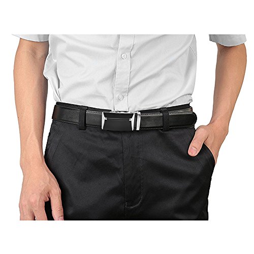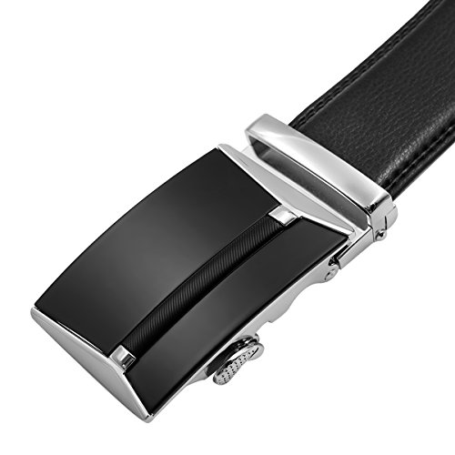 EASY USE - Just slide the dress belt into the sliding buckle and pull the ratchet belt through, the nice belts buckle simply auto locks the automatic belt, to release the belt, gently push the lever on the side of the removable buckle and lock will snap.