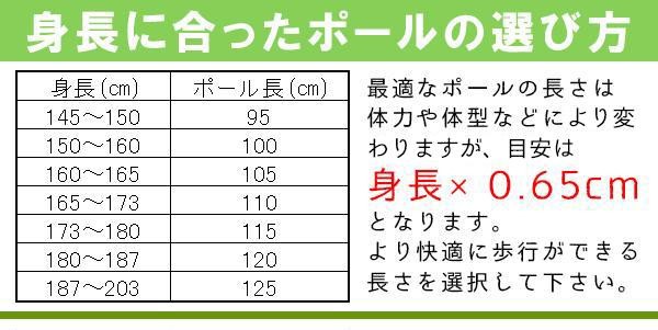 リハビリや運動不足の解消、トレーニングなど、初心者~上級者まで幅広くお使い頂けるウォーキング専用ポール♪2本のポールを使うことで、初心者でも正しい姿勢が保てます。シャフト素材には丈夫で折れにくいアルミ素材を採用!! |