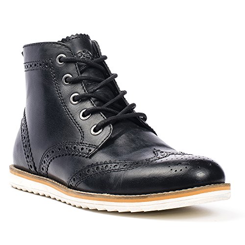 Product DescriptionThe Boardwalk Boot features a leather upper, wingtip design with decorative perforations and serrated edging, lace closure, memory foam heel-cup sock for added comfort and durable saw tooth slip-resistant EVA sole.0