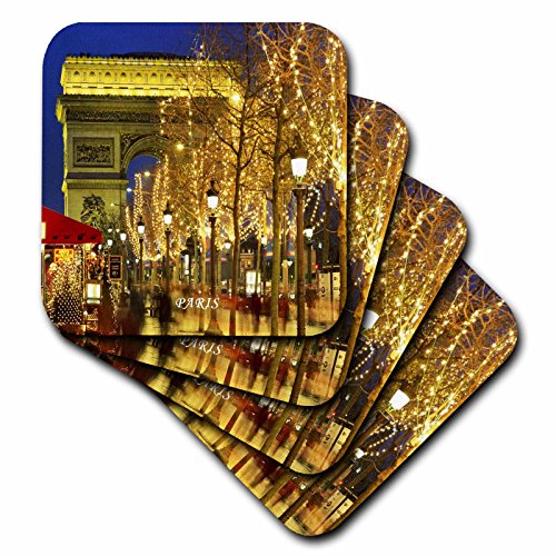 3dRose cst_61896_3 Arc De Triomphe Paris Nite at Holiday Time Ceramic Tile Coasters, Set of 4
