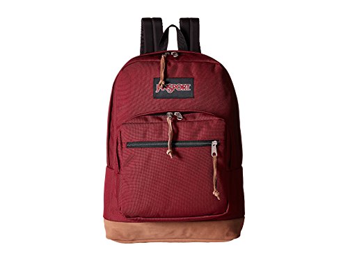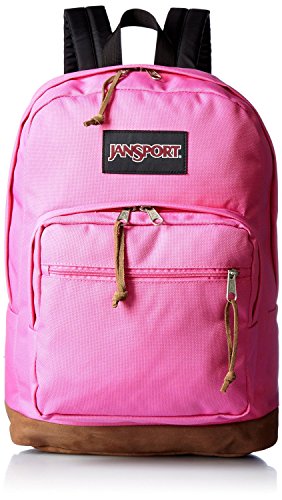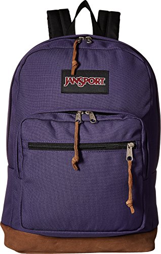 Carry your gadgets anywhere you go in this JanSport Right Pack laptop backpack. It has front zippered pockets and a spacious main compartment to hold your laptop accessories, phone, and keys. You can use the internal laptop sleeve of this 15 inch laptop backpack to protect your device from scuffs. Featuring padded shoulder straps and a haul handle, this travel laptop backpack is comfortable to carry. This bag, with a suede leather bottom, is designed to stand upright when you place it down.Feature