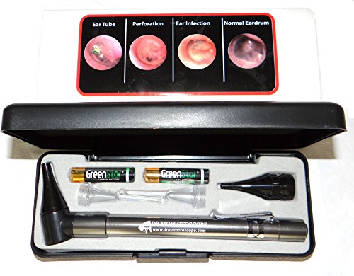 HARD CASE-Third Generation Dr Mom Slimline Stainless LED Pocket Otoscope now includes True View Full Spectrum LED and Pocket Clip PLUS 2 Ear Gator Lighted Ear Curettes for earwax removal.