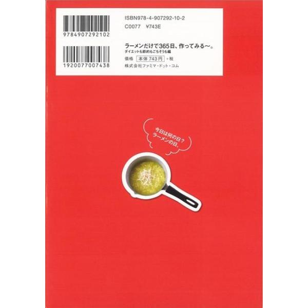 【商品基本情報】 商品名称:ラーメンだけで365日、作ってみる~。ダイエットも節約もごちそうも編 著者/出版社:三浦 良江 編/三浦 良江 編 初版発行日:2013/12/21 サイズ:A5判 ページ数:128 ISBN/JAN:9784907292102/4528189463448