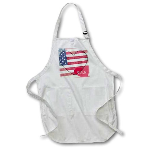 3dRose apr_30472_1 Heart Love USA Flag Art Patriotic 4th of July-Full Length Apron with Pockets, 22 by 30-Inch, White