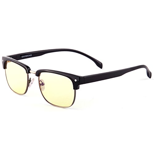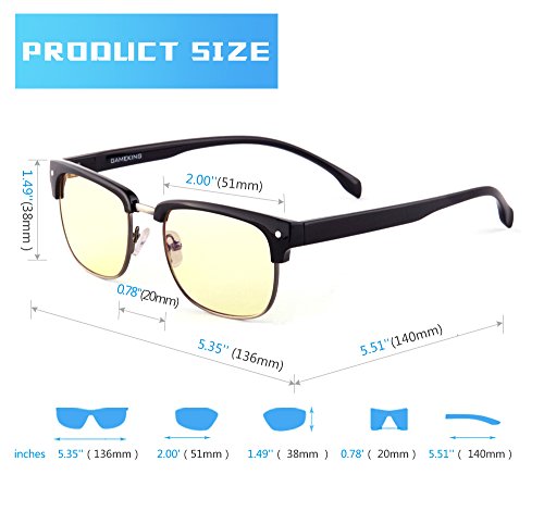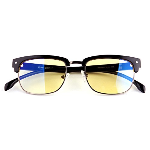 GAMEKING H90036 Retro Vintage Half Frame Blue Light Blocking Computer Glasses Video Gaming Glasses with Amber Tint Len