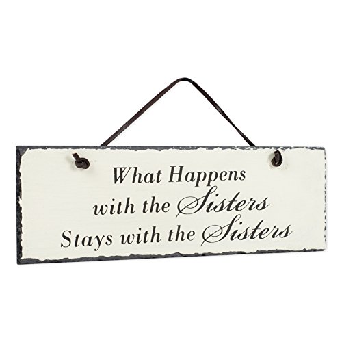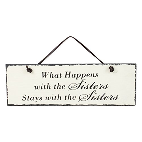 Happens with Sisters Stays 12 x 4 Inch Slate Hanging Wall Plaque Sign