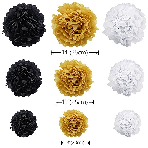 Package include:1 x "HAPPY RETIREMENT"banner and 9* Tissue Paper Pom (Paper Pom Poms Flowers 3 Different Size:14" 10" 8":3*White 3*Black 3*Gold)