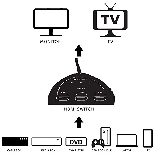 Shenfan 3-Port Hdmi Switch With Pigtail Cable 1.5 Feet Black