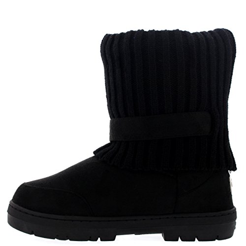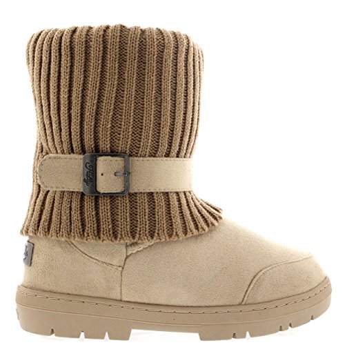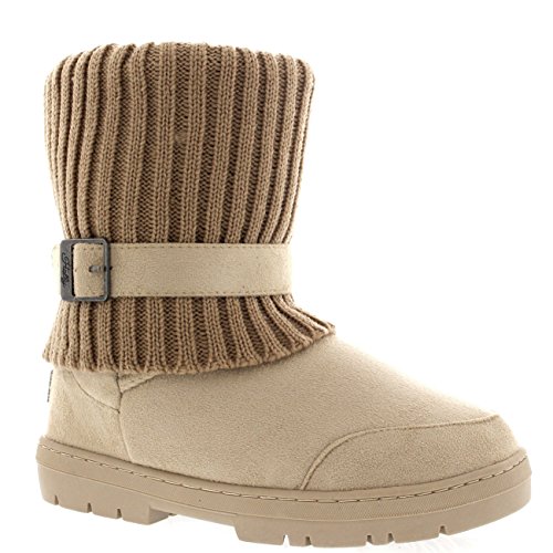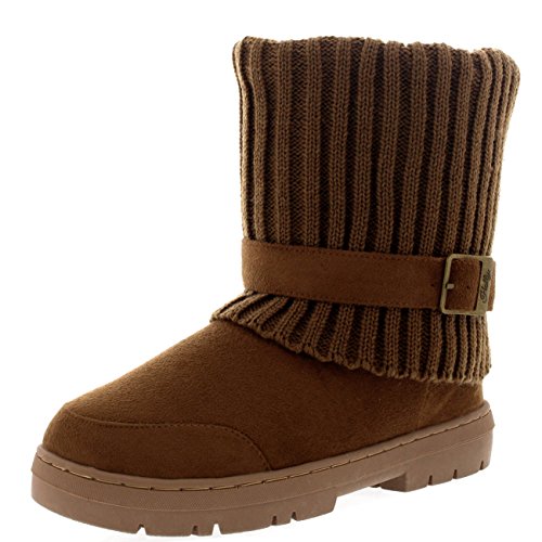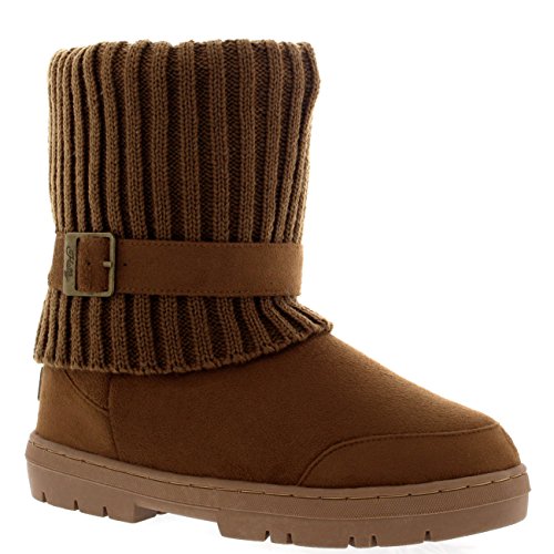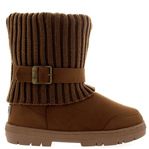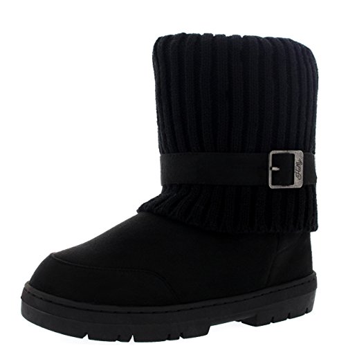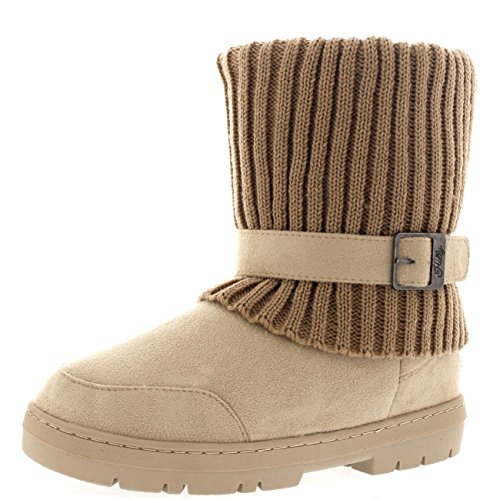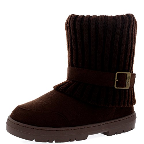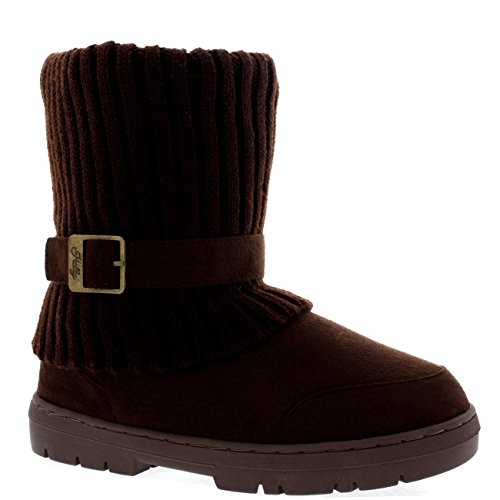 | (Holly)/Women's/Boots/DIRECT FROM USA/Womens Knitted Cardy Cuff Buckle s trap Winter Snow Warm Fur Lined Boots |