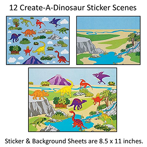 12 DIY Dinosaur Sticker Sheets. Each package contains 12 background sheets plus 12 sticker sheets with 36 stickers.