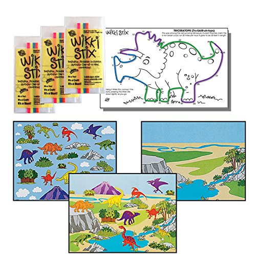 12 Individual Packages of Dinosaur Wikki Stix. Each package features a dinosaur playsheet and 8 Wikki Stix.