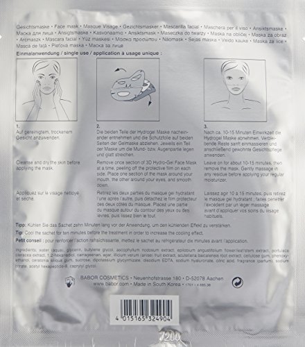 For Dry Skin. A super hydrating sheet mask containing valuable Hyaluronic Acid, Hexa Peptide 8 and second skin technology for all skin types. The hydro-gel sheet mask with Hyaluronic Acid and Hexa-Peptide 8 comes in two sections for a perfect fit to your facial contours. Our innovative hydro-gel sheet mask feels cool and instantly refreshing on the skin. In just 10-15 minutes, Hyaluronic Acid and Hexa-Peptide 8 leaves the skin looking plumped and hydrated. Made with all natural ingredients such as: Hyaluronic Acid and Hexapeptide-8 . All BABOR products are CRUELTY FREE and Never Tested on Animals. Vegan. Made in Germany. BABOR is the 2nd most sustainable luxury brand in Germany.