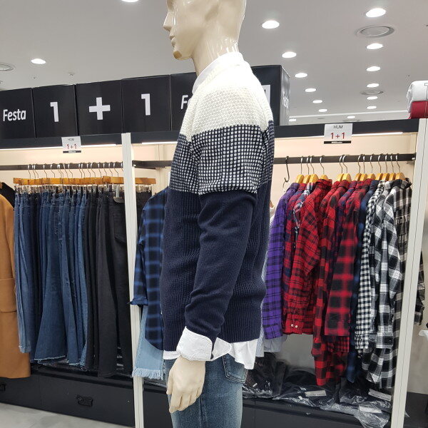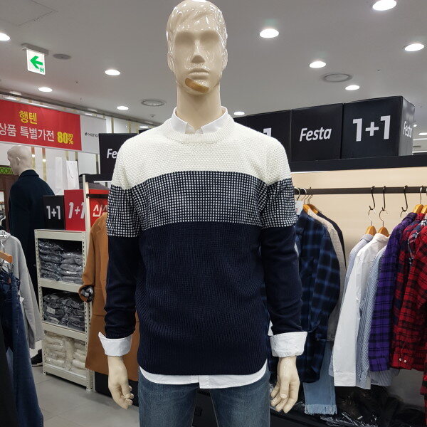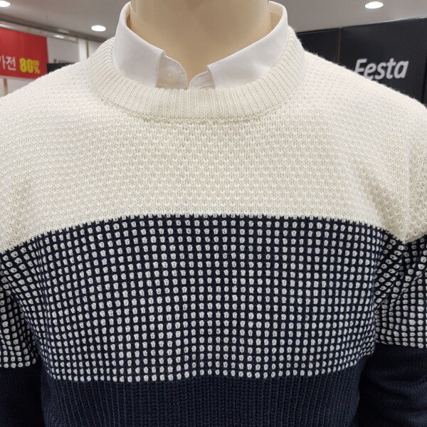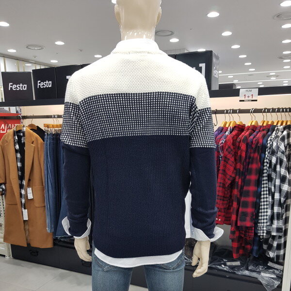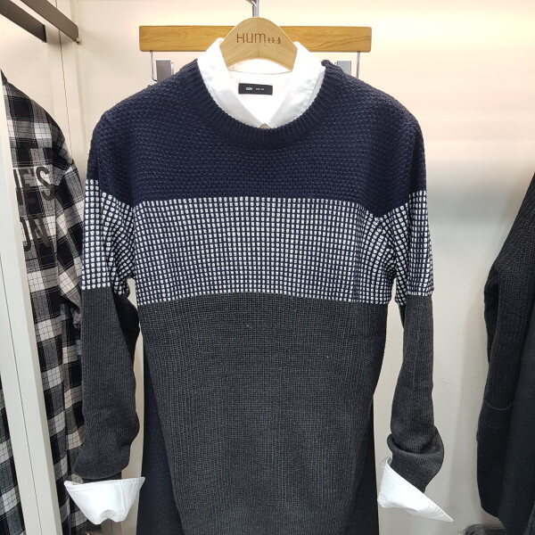 흄 남성 절개배색 풀오버니트입니다.배색감이 너무 이뻐 만능코디룩입니다.사이즈도 110사이즈까지 있어요~~^^
