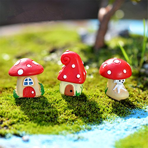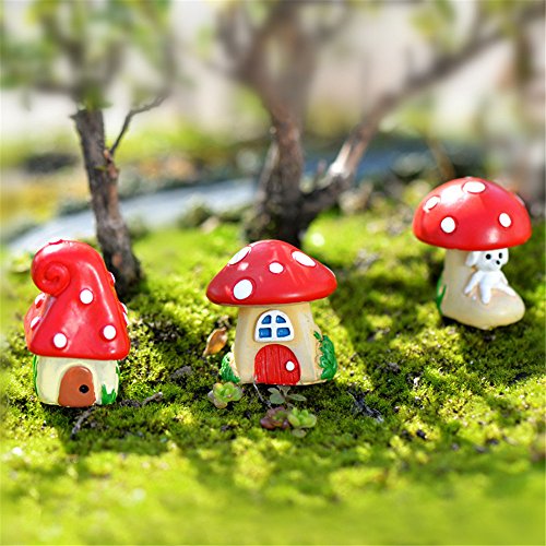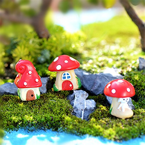 Danmu 3pcs (3 styles) Mini Resin Mushroom Houses Fairy Garden Micro Landscape Home Garden Decoration Plant Pots Bonsai Craft Decor