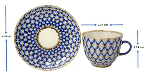 -. Brand : Lomonosov Russia -. Color : White, Cobalt Blue -. Feature : The item is HAND PAINTED. Embellished with 22-karat gold. Hand wash is recommended. / The original Lomonosov factory logo is on the bottom of each piece. Genuine Article - 100% Guaranteed. / Material: hard-paste porcelain. Made in Russia by the Imperial Lomonosov Porcelain Factory. / Pattern name: Cobalt Net / Please, choose the size you need. -. Label : Lomonosov Russia -. Manufacturer : Lomonosov Russia -. ProductGroup : Kitchen -. ProductTypeName : KITCHEN -. Publisher : Lomonosov Russia -. Studio : Lomonosov Russia -. Title : Lomonosov Imperial Porcelain Espresso Coffee Tea Cup with Saucer Cobalt Net