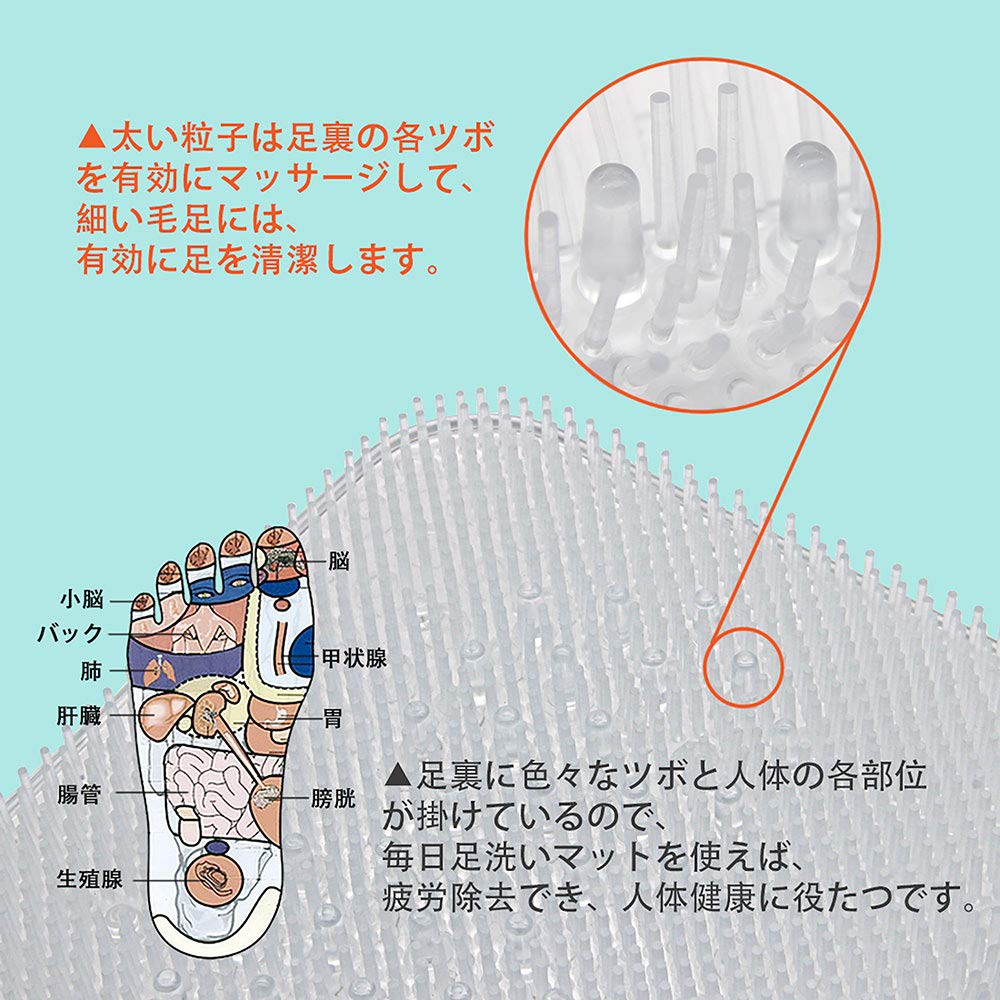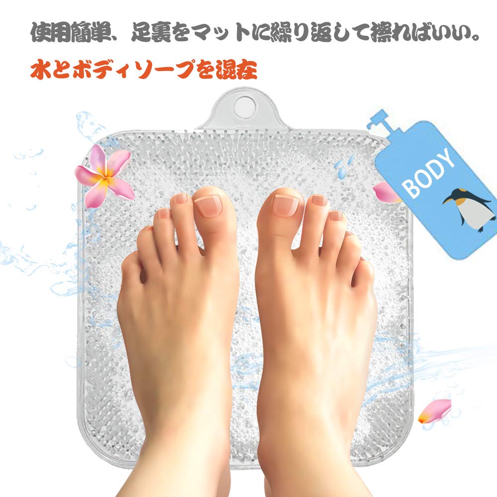 泡で足裏、指の間をキレイにするフットバスマット、古い角質を洗い流し、フレッシュな爽快感が味わえます。角質除去、血行促進、水虫予防、足の匂い消しなどを改善できる健康グッズ。