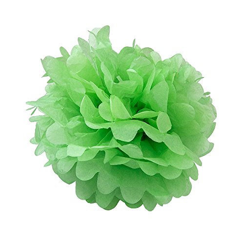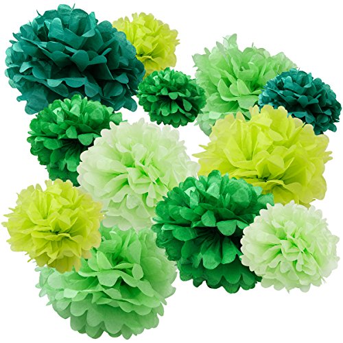 - Set of 12 (light apple green, mint green, aqua green, green, lime green): 3x 8", 3x 10", 3x 12" 3x 14" easy-to-use pom poms with ribbon and instructions.