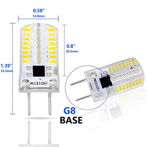 - ♦ MINI SIZE - Standard Bi-Pin G8 base.Please check the bulb's dimension carefully to see if it can fit your fixture.The dimension is marked clearly in the left picture.