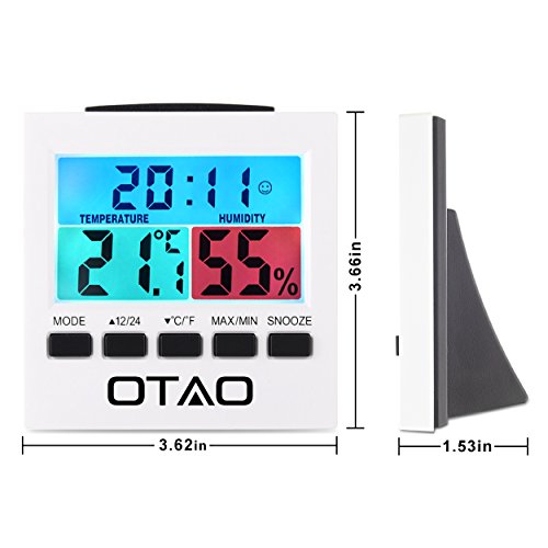 (OTAO)/Health Care/Respiratory Aids Accessories/DIRECT FROM USA/Otao Indoor Thermometer Hygrometer Digital Humidity Monitor Gauge with Backlight Alarm Clock wi...