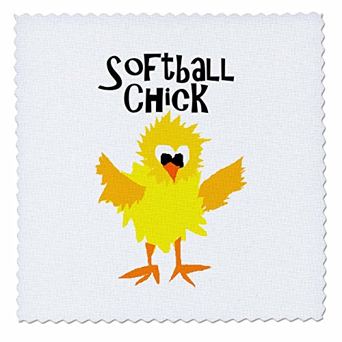 3dRose Funny Cute Chick Softball Player Quilt Square, 12 x 12"