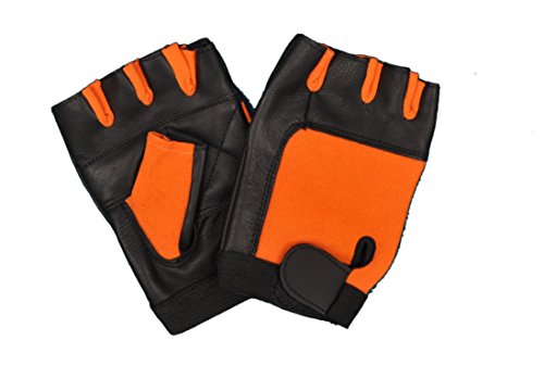 -. Title : Weight Lifting Padded Leather Training Gym Exercise Cycling Wheelchair Black/Orange Gloves W-052