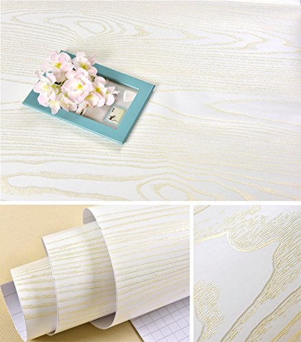 Faux Wood Grain Contact Paper Self Adhesive Vinyl Shelf Liner Covering for Kitchen Countertop Cabinets Drawer Furniture Wall Decal (23.4"Wx117"L, White-gold sandalwood)