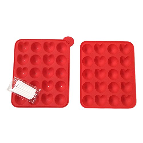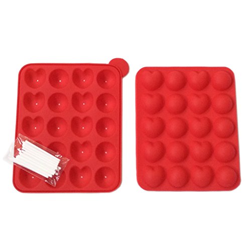 Cake Pop Silicone Tray Valentines Day Mold 20 Heart Shape and Lollipop Molds Sticks Included