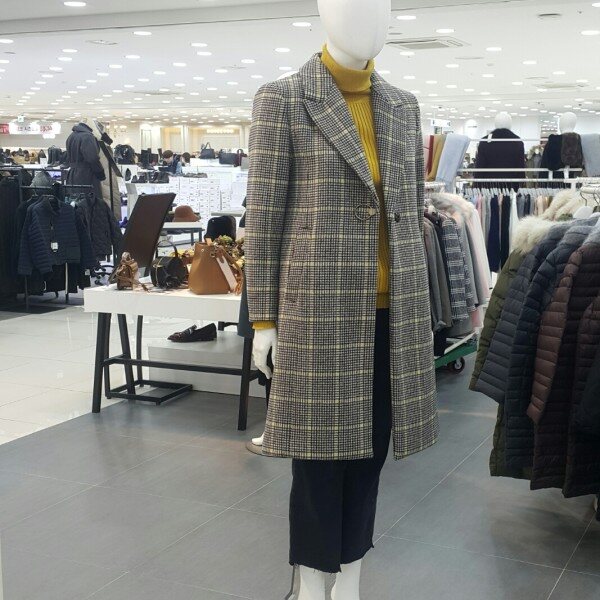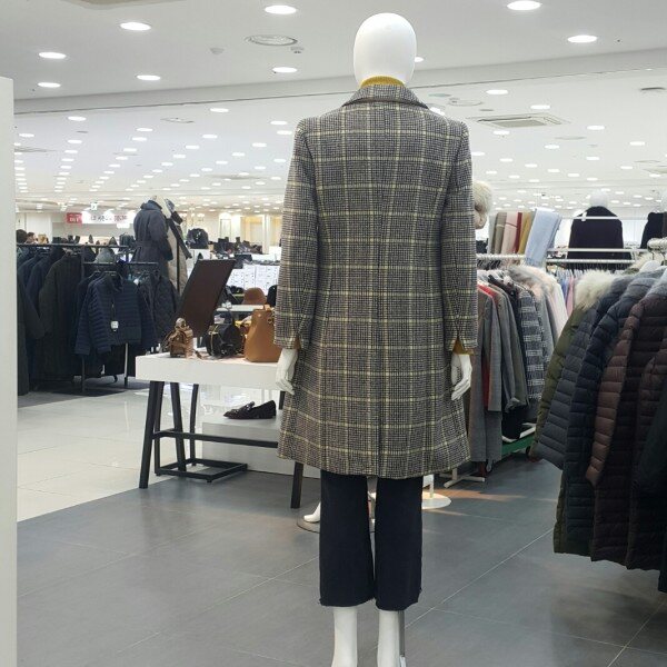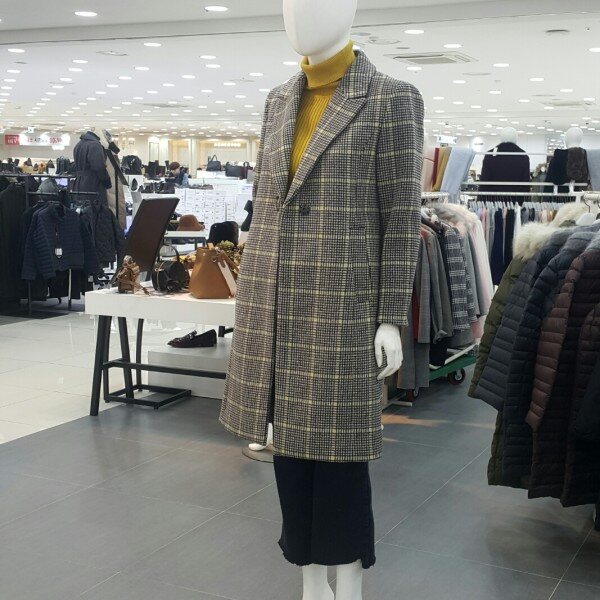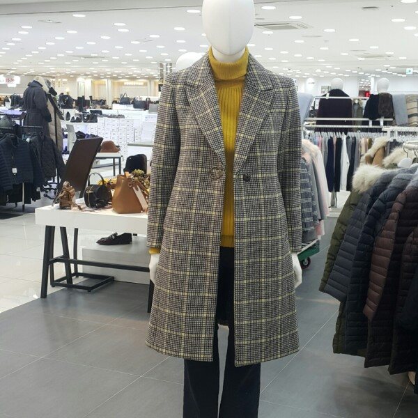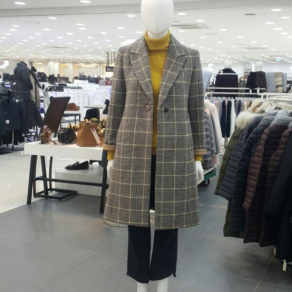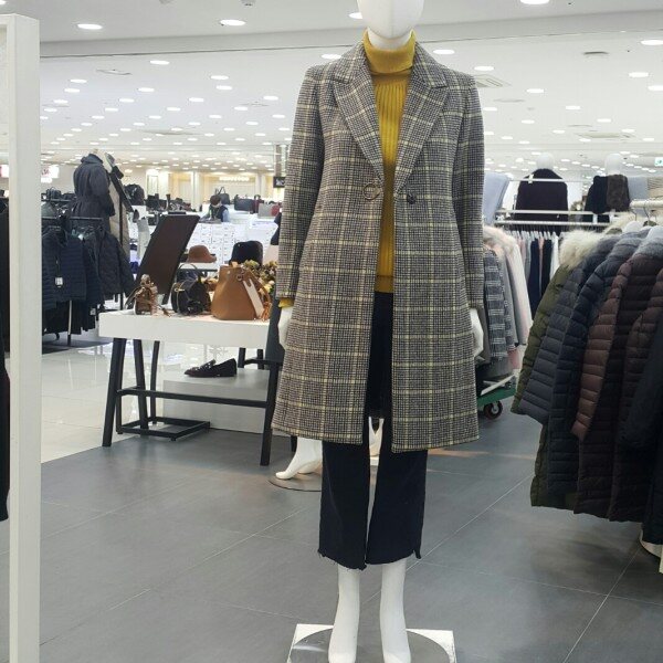 화사한체크톤에 링브롯지가포인트되는라인이있는 롱코트입니다