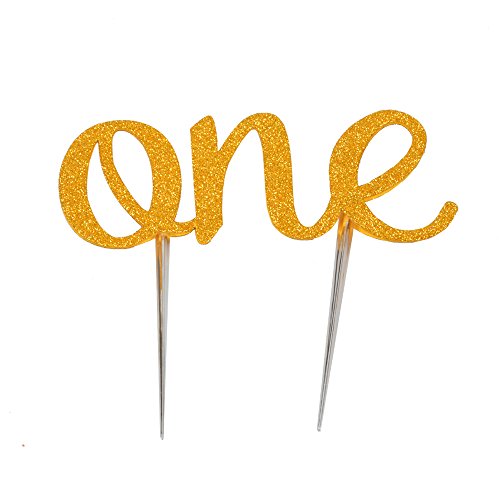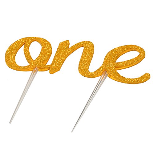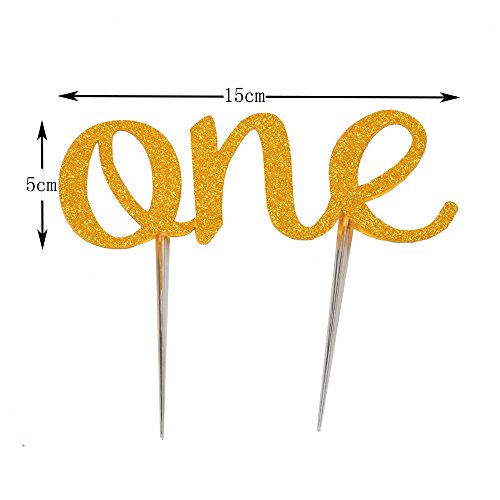 "One" Cake Topper First Birthday Cake Decoration Double Sided Gold Glitter 1st Birthday Party Supplies
