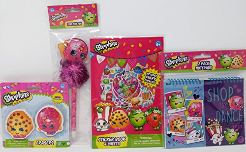 Studio : Combined Manufacturers Publisher : Combined Manufacturers Binding : Toy Product Description Bundle pack includes a total of 2 spiral notepads (spiral is made of plastic), 40 sheets in each pad, each pad measures 5" x 3". Sticker book with 4 sheets of stickers and some puffy stickers. Large die-cut erasers Kooky Cookie D'Lish Donut. Pom pom pen has bubble with glitter D'Lish Donut and glitter pom pom in pink. 0