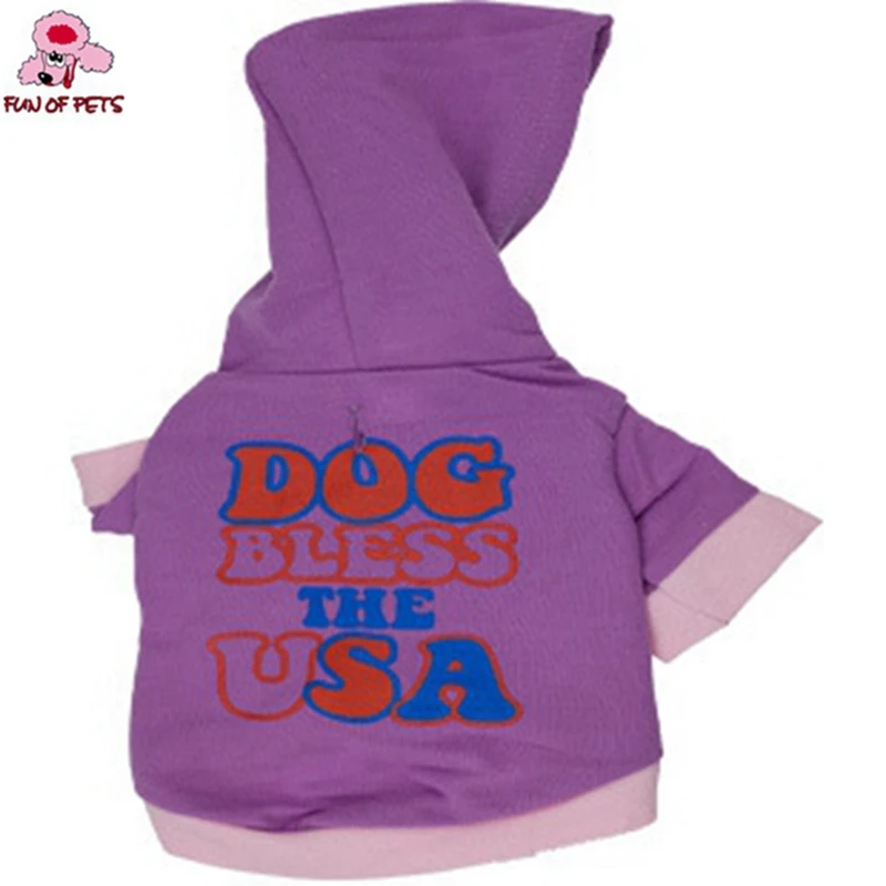 Item:Cute Purple"DOG USA" Pattern T-Shirt with Hoodie Dog Clothes for Pets