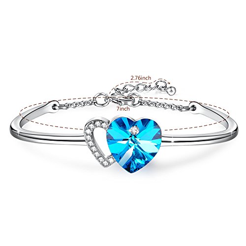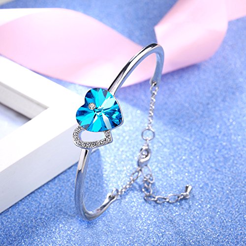 Feature: Double love heart with blue crystal, cuff bangle bracelet with extend chain to fit your wrist, elegant and charming. a good choice for lover, friends,families and yourself.