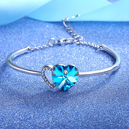 "Love Story"Heart Link Bangle Bracelet for Birthday Anniversary Wedding Gifts,Sapphire Crystal from Swarovski Best Gift Idea *Expressing your love and best wishes to her by choosing this birthday Gift Link Bracelet.
