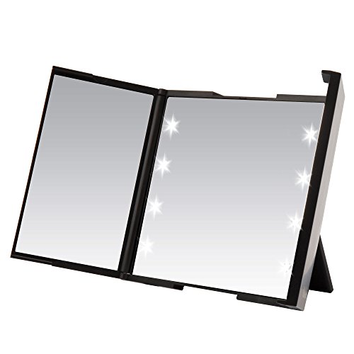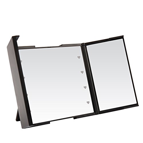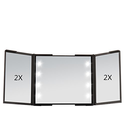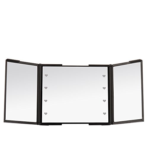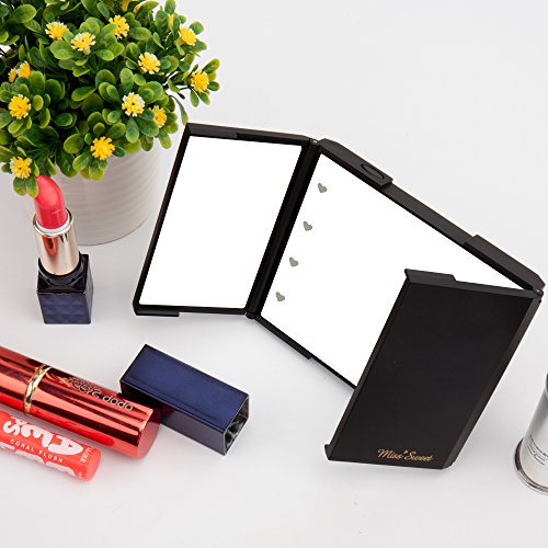 Miss Sweet Lighted Tri-Fold Compact Mirror with 2X Magnification (Black)