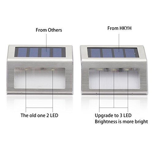 - Exclusive 3 LED strengthened 100% new release to supersede 2 LED models, brighter and more durable.This item is stainless steel Solar Power garden yard stair step Lights.