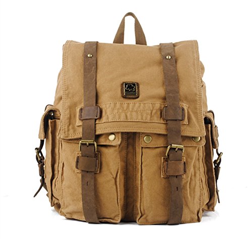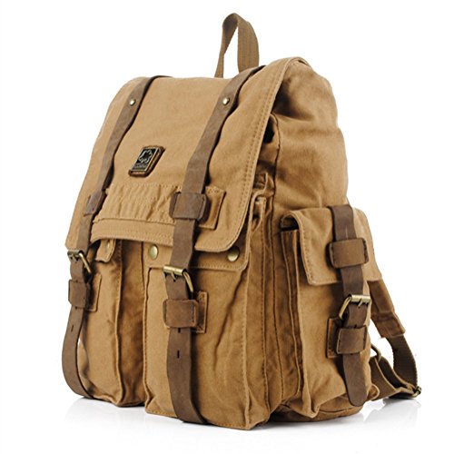 -. Title : DRF Vintage Canvas Backpack Casual 17" Laptop School Bag Rucksack BG-33 (Khaki)