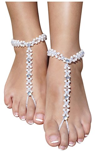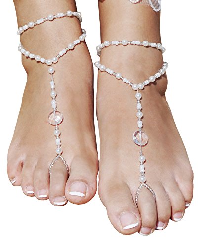 Features of the pair of foot Chain: Durable faux peral material, lightweight and comfortable to wear; Simple design with pearls, The full length can not be changed, slightly elastic; Light weight, can wear with or without shoes;
