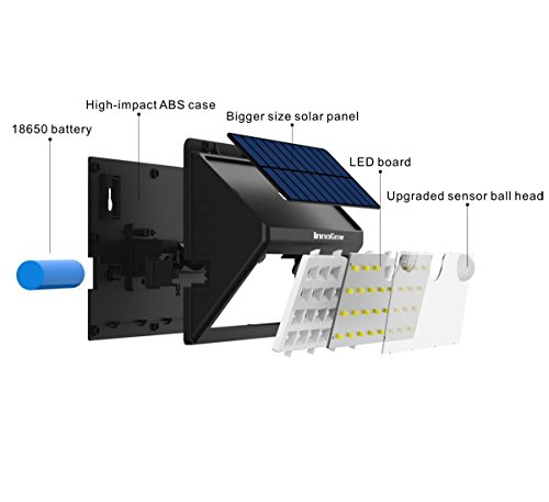 Solar Powered & High Efficiency: 30 super-bright LED generating 450 lumens of light. Built-in rechargeable 18650 lithium battery(2200mAh) The new bigger solar panel ensures a longer working time.