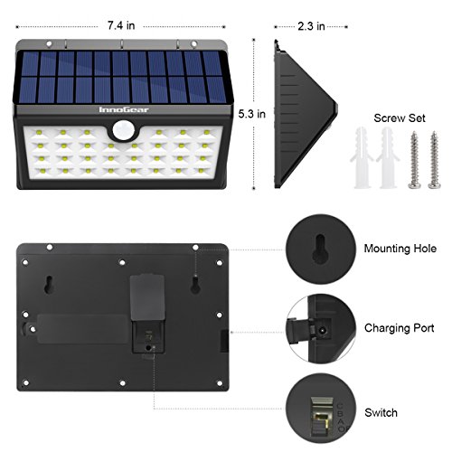 InnoGear Upgraded Solar Lights 30 LED Wall Light Outdoor Security Lighting Nightlight with Motion Sensor Detector for Garden Back Door Step Stair Fence Deck Yard Driveway, Pack of 4