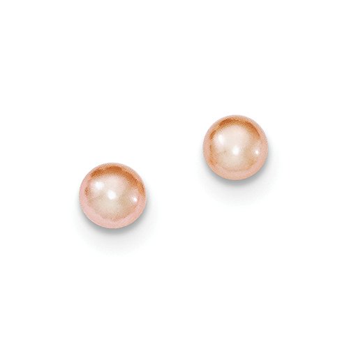 Solid 925 Sterling Silver 5-6mm Pink FW Cultured Button Simulated Pearl Stud Earrings