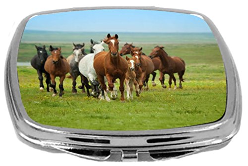 Rikki Knight Compact Mirror, Horses Running