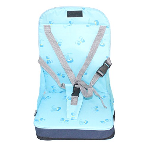 SELFTEK PORTABLE FOLDING 5 POINT BABY DINING CHAIR HARNESS TRAVEL BOOSTER BLUE