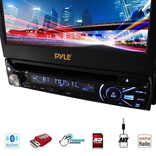Premium 7In Single-DIN Car Stereo Receiver With Bluetooth - In-Dash Motorized Touchscreen TFT/LCD Display with AM- FM Radio and Multimedia CD / DVD / MP3 / SD / USB & More