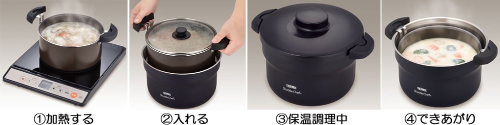 2.「入れる」保温容器に入れフタを閉め、あとはシャトルシェフにおまかせ