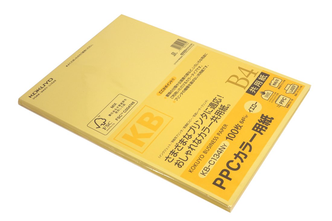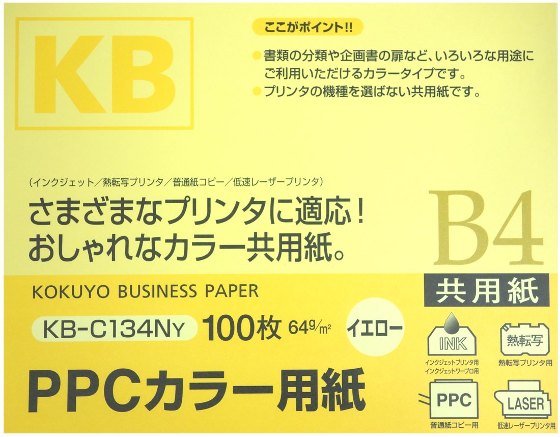 B4 100 pieces of KB-C134NY Kokuyo PPC color paper both FSC-certified paper yellow (japan import)